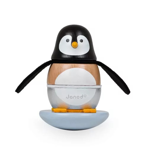 Combine wooden and felt pieces to assemble a pretty wobbling penguin.