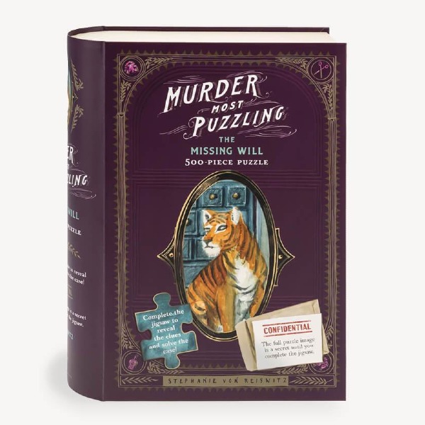 Jigsaw meets whodunit! Complete the jigsaw puzzle to reveal the clues and solve the murder mystery. This absorbing mystery puzzle offers hours of entertainment and an excellent challenge for the little gray cells. • Begin by reading the story of the incident. • Then, guided by the narrative rather than a visual reference, complete the jigsaw puzzle. • The finished image provides all the clues you need to crack the case.