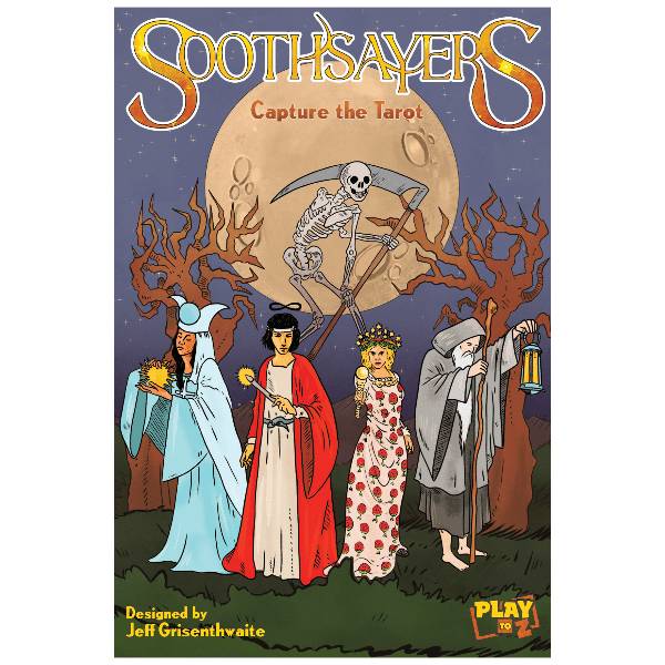On your turn, choose an action: earn coins, draft cards, ascend to higher levels, or capture a tarot card. Rival soothsayers may choose to follow your action, but if you have a higher level, they must pay you for the privilege.